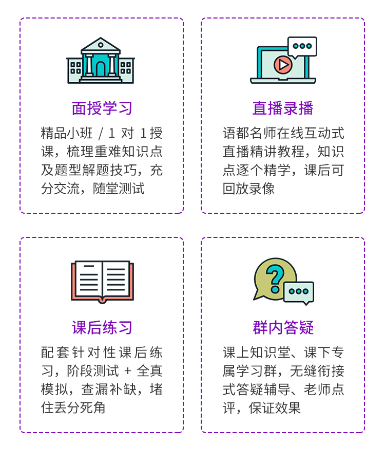 中外教互动课程,学员和老师实战练习沟通,纯语言环境下快速掌握语言。
